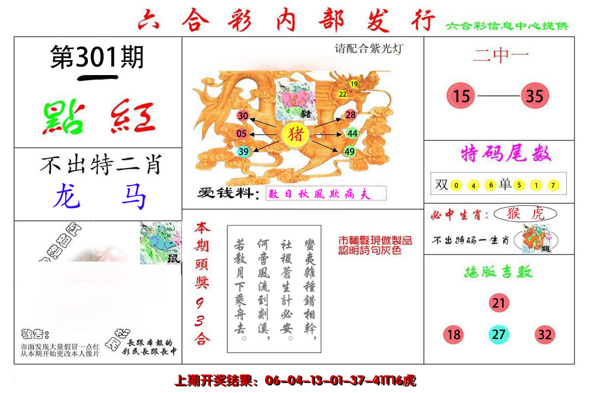 300期:〖绝杀二肖〗【狗猪】开虎16
